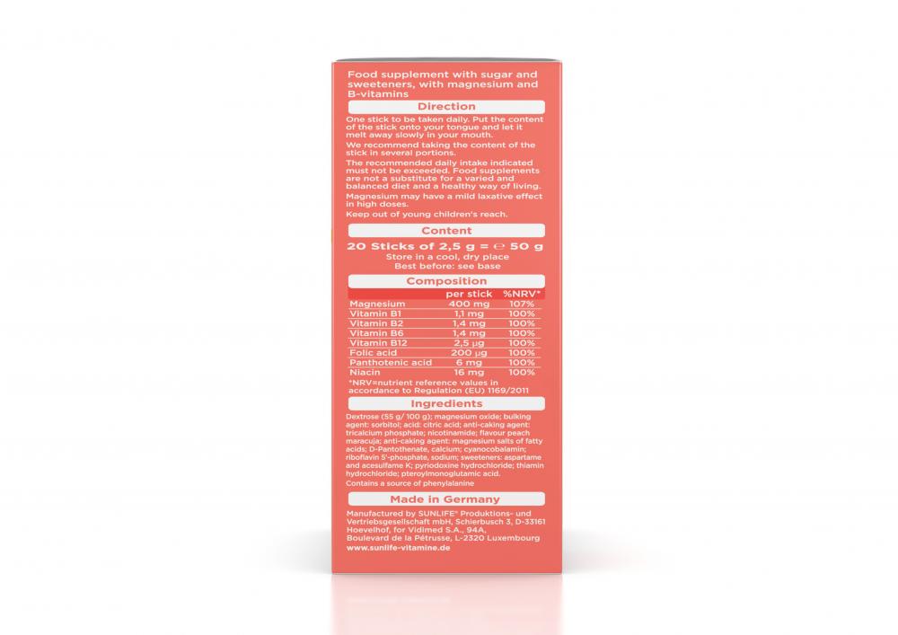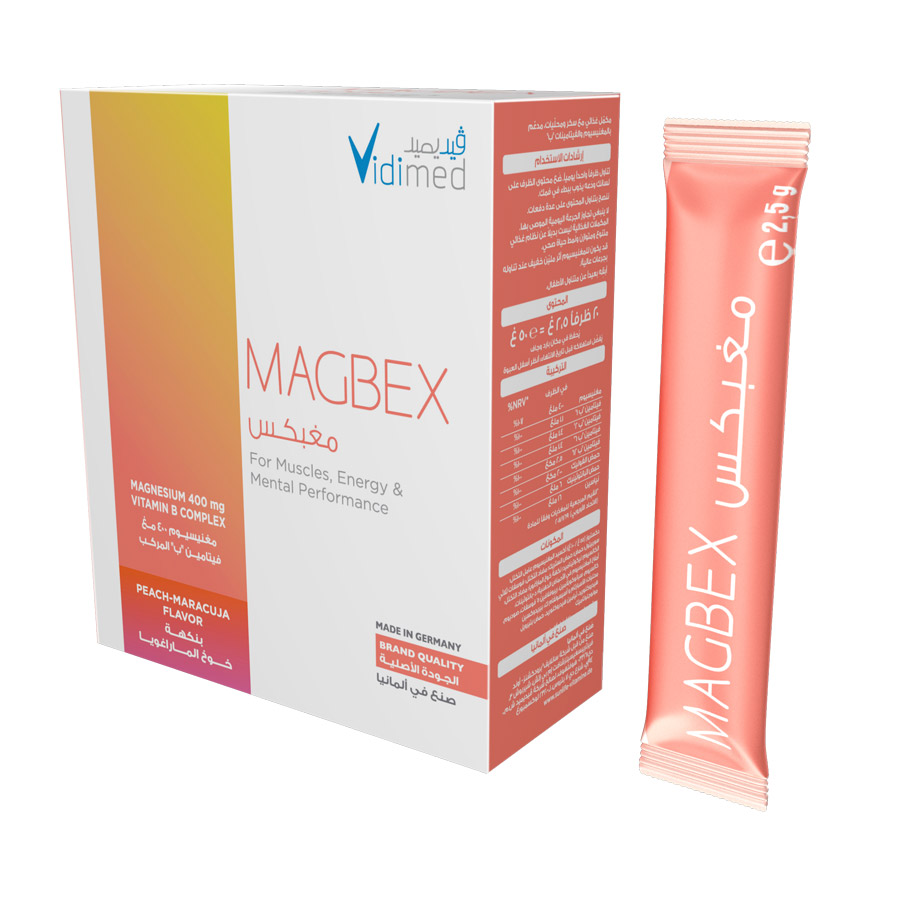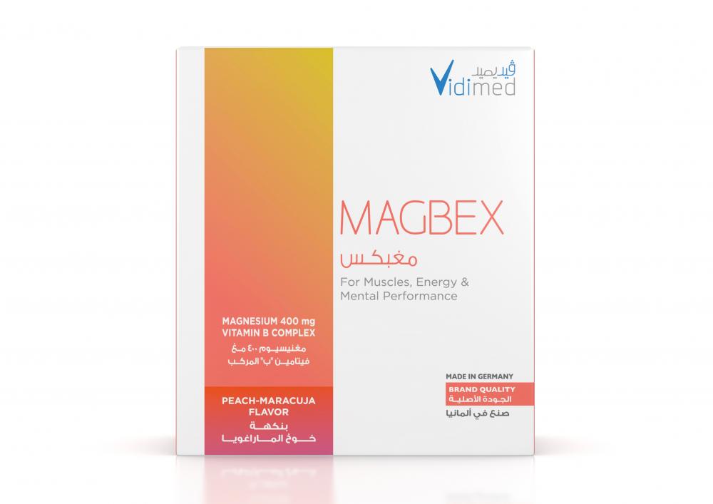 Vidimed MAGBEX is a tasty peach flavored supplement that ensures fast absorption of magnesium and vitamin B without the need to drink water; helping you to feel less stressed and more balanced.