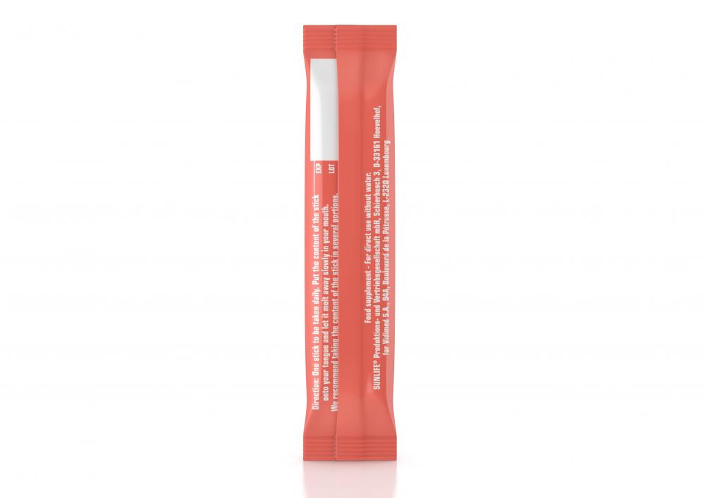 Recommended dose is 1 stick per day. To be consumed without water. Just place the melt- away powder directly on your tongue.